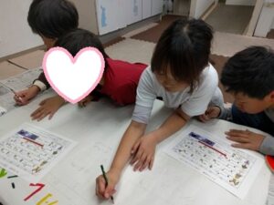 数字探しやぬり絵を集中して行なっています😊