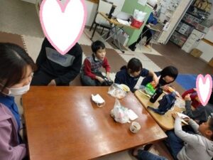 おもちゃで遊んだり持参した宿題を行ったりして自由時間を過ごしていました☺