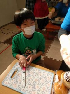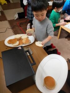 ハンバーガー作りとプレゼント交換を行います(*^_^*)