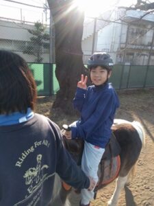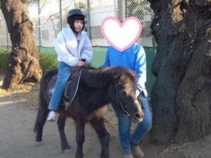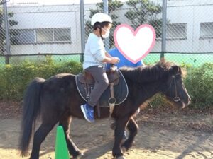 ポニーに乗る前は、とても緊張していた様子でしたが
