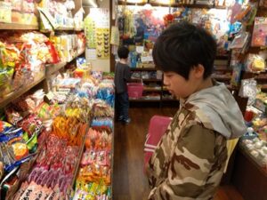 棚いっぱいに並んだ色とりどりの駄菓子を前に、子どもたちは手に取ってじっくり見比べる姿が見られました☺