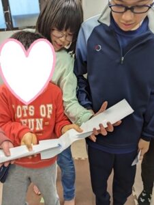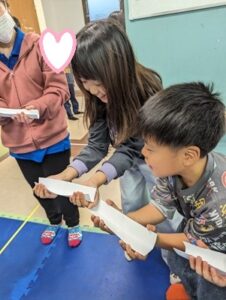 画用紙の両端を手で添えて持っておとなりに運ぶのですが