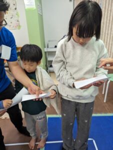 少しずつ音に合わせて体を動かすことに慣れてきた様子が見られました。
