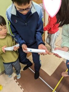 本日は、画用紙を使ってビー玉運びを行いました(*^^*)