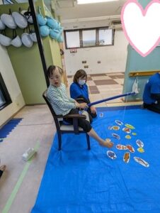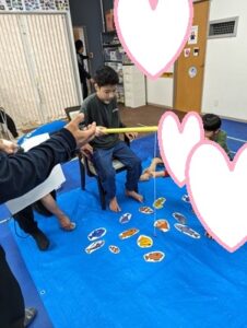 手先の操作と集中する時間づくりに向けて、釣り竿を使った魚釣りを取り組みました🤗