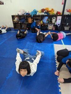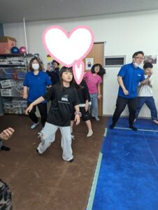 体をしっかり動かしながら、バランス感覚やリズムに乗って、みんなで動きをまねる活動に取り組みました👏✨