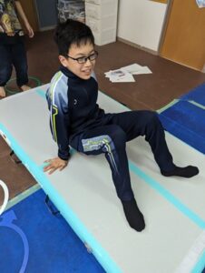 トランポリンを乗ったり、平均台を歩いたり