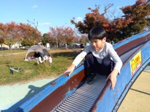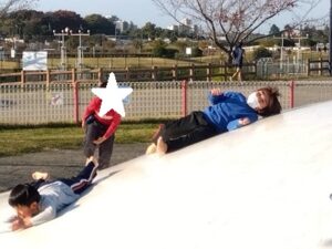 こちらは芝滑りと遊具の二面性になっておりまして…