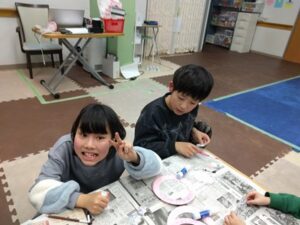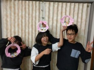 完成した飾りを頭にのせてポーズをとる子どもたちの笑顔もあり、作る時間と楽しむ時間の両方が広がっていました😊