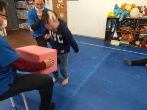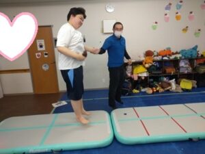 その子に合わせて高さや回数を調整しながら、できた感覚を大切に進めています。