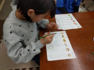 学習では、引き続き、ひらがなを並び替えてことばにするプリントを行っています☺