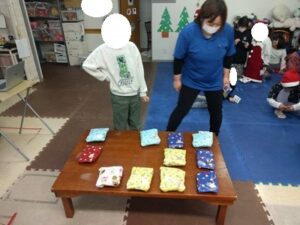 運動(ブロック運び)の様子☆ 落とさない様にしっかり持ってね!