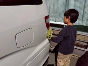 余暇時間には、車の清掃を行ってくれる子もいて、その対価として外遊びを楽しみました。