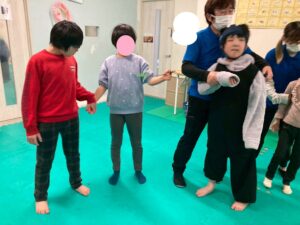 準備体操から始まり「ありがとうの花」では皆で円になって手を繋ぎ踊りましたよ!