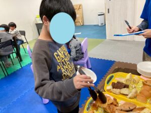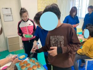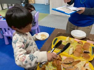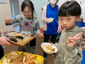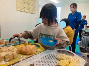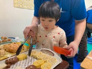 それぞれ好きなパンを選び、自分の力でトングを掴んぶことができました。