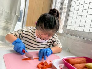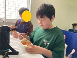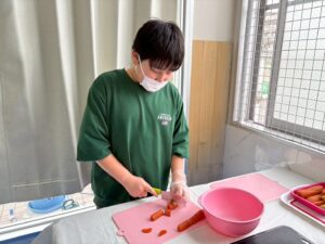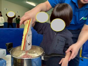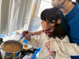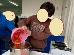 みんな、上手に具材を切ったり、お鍋で具材を上手に混ぜていました。
