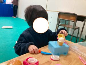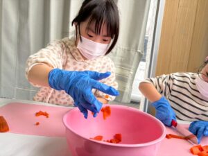 本日の第二教室は「感覚統合遊び」で小麦粉粘土を行いました。