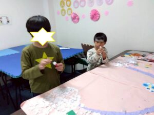 そんな中訓練室①では「イベントカレンダー作り」を行いました!今回作るのは4月。進学、進級をして新しい環境になり、色々な変化がある月ですが、そんな中でもイベントカレンダーを作り予習をしよう!そんな児童たちの姿をどうぞ!