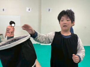 子どもたちも目標目掛けて、集中してボールを投げ込み、