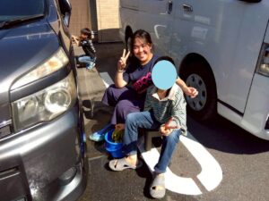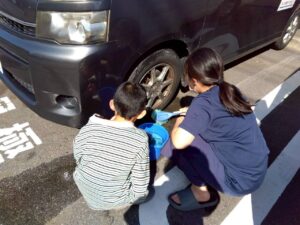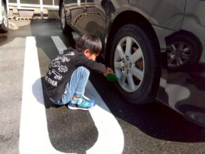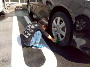 余暇時間には、車の清掃を行ってくれる子もいて、その対価として外遊びを楽しみました。