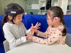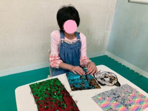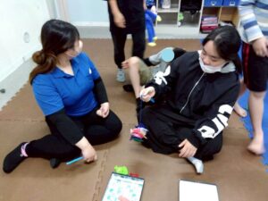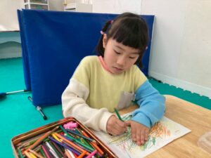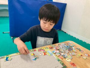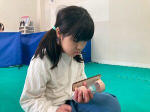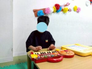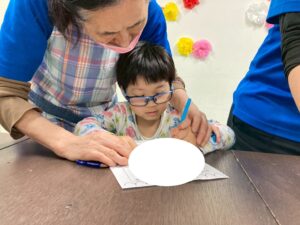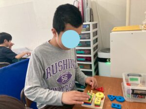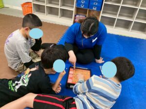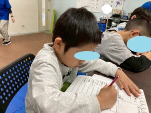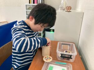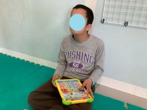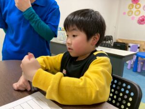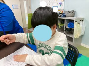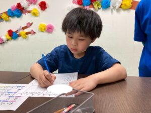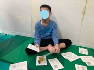 訓練室2では「SST (自己紹介)」を行いました。今回は、自己紹介カードに名前や誕生日、好きなこと、食べ物を記入!