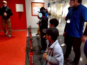 今回体験したのは「地震」「火災」の2つ!地震体験では震度7を体験し、係の人から棒をしっかりと掴んでいるように伝えられ、激しく揺れる中でもしっかりと掴まることが出来ました!
