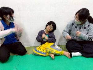 飛び石や一本橋渡りなどでバランス感覚を養いながら身体を動かしました。ぐっと冷え込む日が続いていますがそんなことお構いなしのようにライズのお友達はみんな元気ですね。お部屋の熱気でこちらも汗をかきそうです。