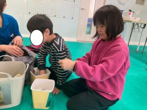 訓練室➁では「ライズベイカリー」を行いました!数種類のパンの中から、自身の好きな物をトングを使いお皿へ、指先の運動と共に後のお友達の分も考えながら行いました!