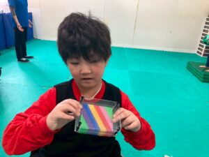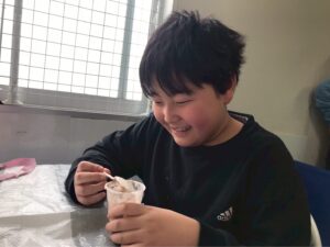 空き時間には外で体を動かしたり、粘土に絵の具を混ぜたりなどして楽しみました。