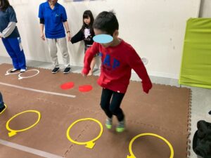 訓練室②では「運動遊び」を行いました!こちらも3月に入り春の訪れを感じるという事で曲「春が来た」の特定のワードに合わせて体を右に左に前に後ろに動かす児童の姿をどうぞ!