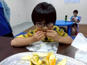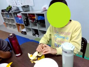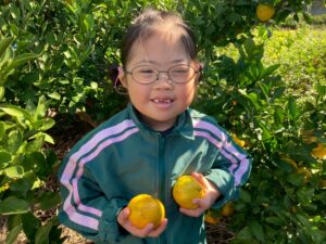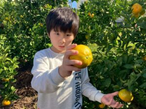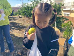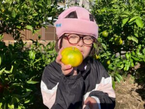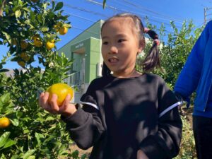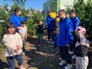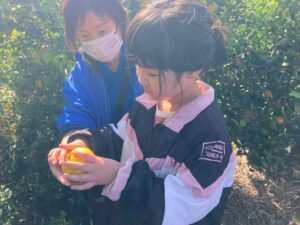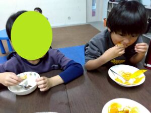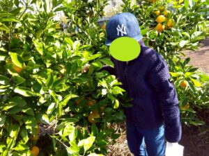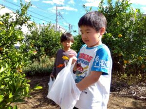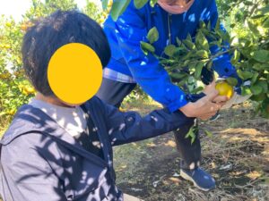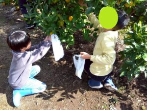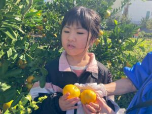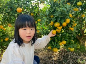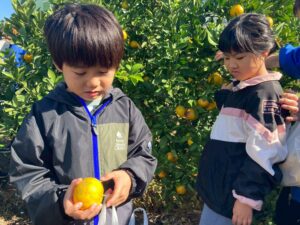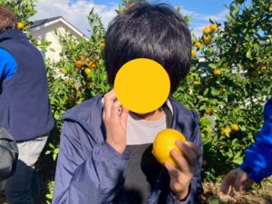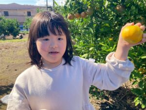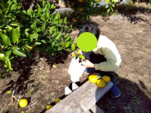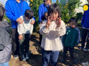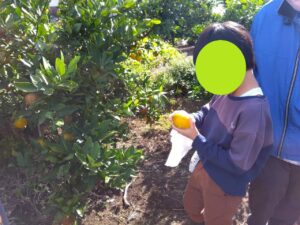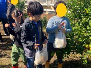 おやつで採れたてのみかんを食べる事ができて、とっても満足気な子どもたちです♫