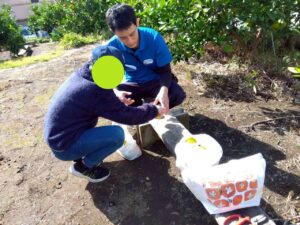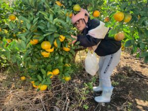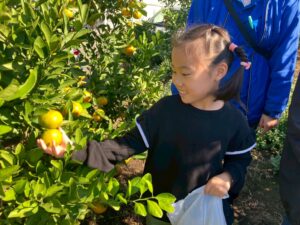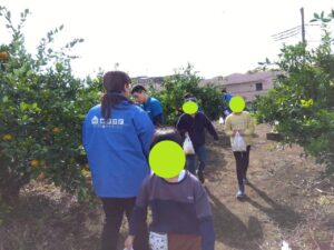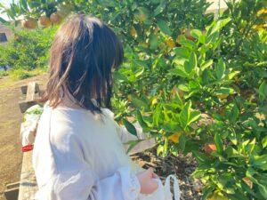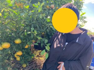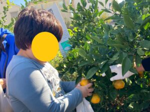 みかん狩りの畑に着くと、収穫方法の説明がありました。
