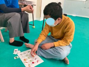 地震を想定した訓練で、机の下に隠れることを行いました。