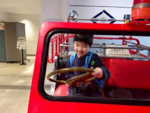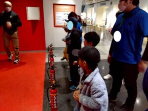 今回体験したのは「地震」「火災」の2つ!地震体験では震度7を体験し、係の人から棒をしっかりと掴んでいるように伝えられ、激しく揺れる中でもしっかりと掴まることが出来ました!