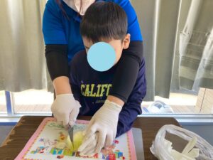 第二教室ではイベントカレンダーの作成と、スイートポテト作りを行いました。