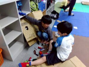 本日の第一教室は「運動遊び」で雑巾がけをしました。