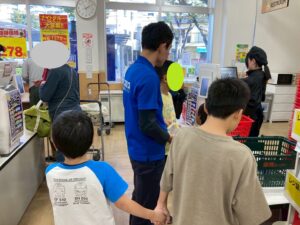 近くのコンビニに設置されている、ペットボトル回収機に職員と児童と一緒に投入作業を行いました!