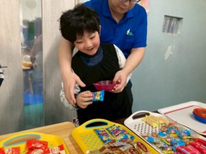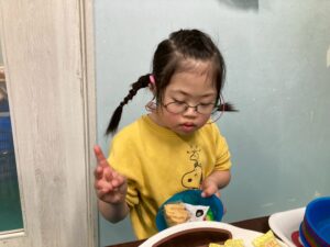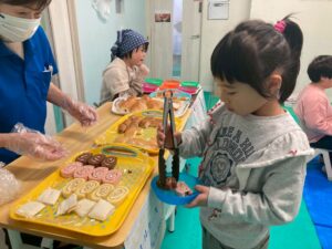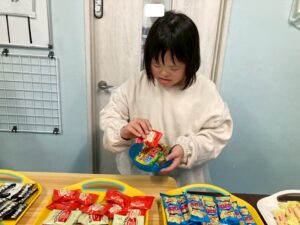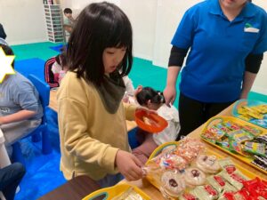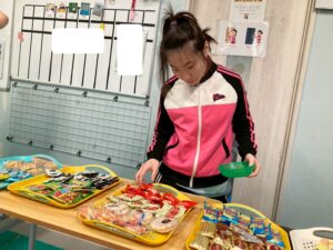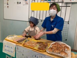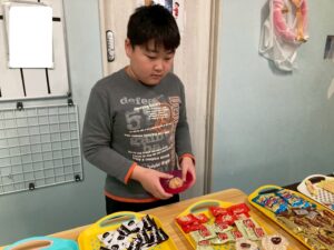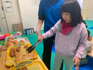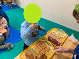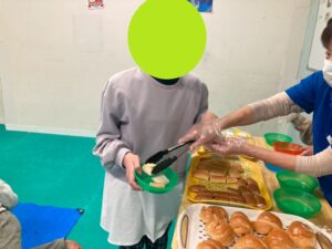本日訓練室①では「ライズベイカリー」を行いました。自身が好きなパンはあるかな?みんなはどのパンを取るのかな?みんなで順々にトングで掴み自身のお皿に乗せる姿をどうぞ!