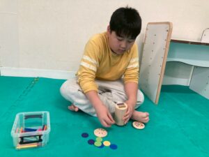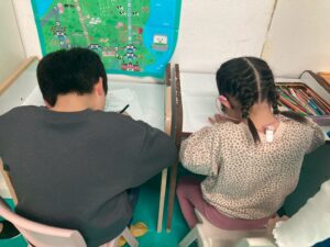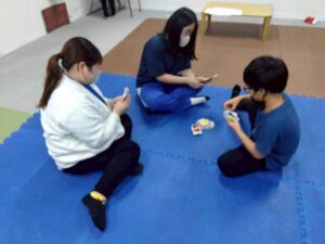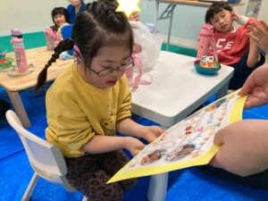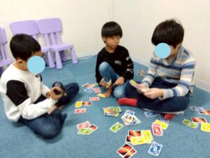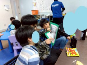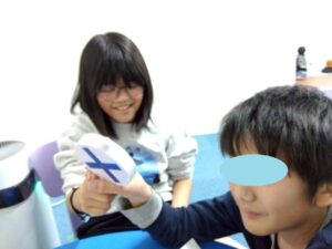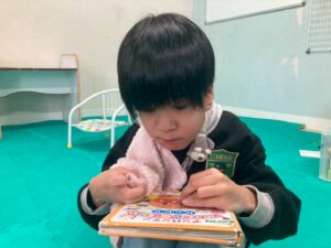 訓練室②では「SST」を行いました。今回は街の中で見かけるイラストや案内標識ということでこれはどんな意味があるのだろう?みんな1枚のイラストを持ち、説明を聞き自分のだと思ったら手を挙げる。ゲーム形式で行いました。そんな児童たちの姿をどうぞ!
