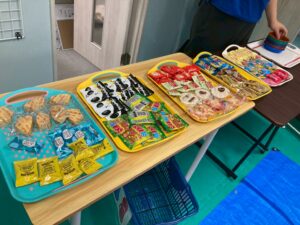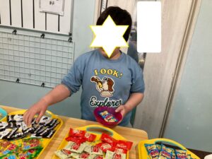 第一は『おやつセレクト』です。目の前のたくさんのお菓子の中から食べたいものを選ぶレク。一見、嬉しい楽しいレクのようですが、食べたいおやつを選ぶということは、食べたいのに選べないということでもあり、どこで切り捨てるかという難しい選択も同時にしています。心中は複雑なんです。