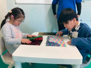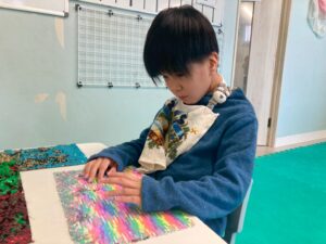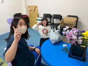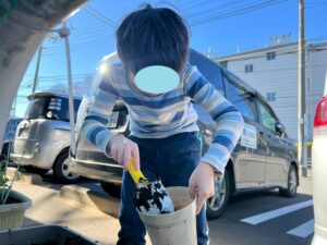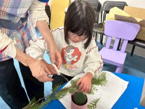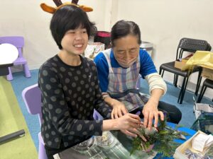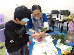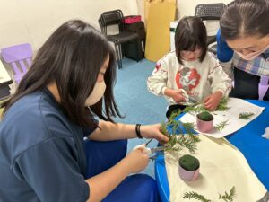 花をスポンジに挿したり、松の葉をハサミで切ったりとたくさんの工程を行いました⭐