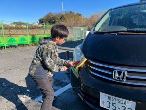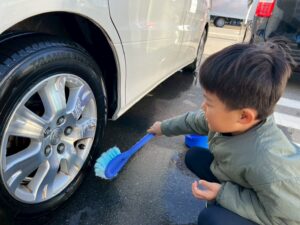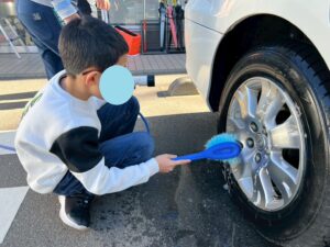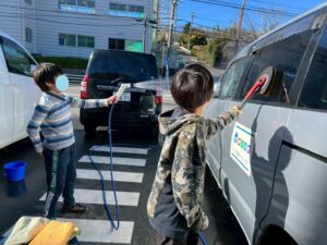 また、自由時間には1年間お世話になった車両を「洗います!」と自発的に