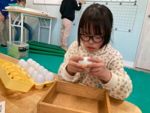 それぞれ好きなパンを選び、自分の力でトングを掴んぶことができました。