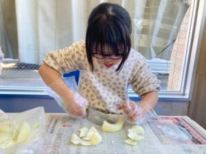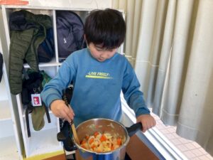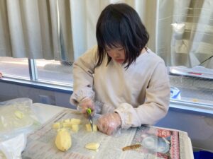 とっても上手に野菜の皮を剥いたり切ったりすることができていました⭐