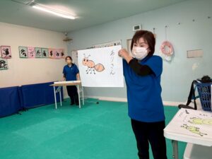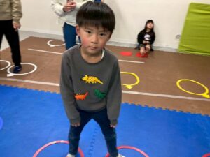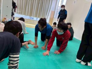 アリの動きをしたり、カエルさんのようにピョンピョンとんだりしました♬