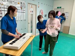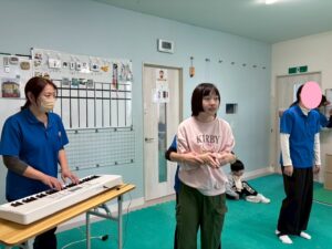 演奏される曲に合わせて身体を動かしました(^▽^)/