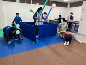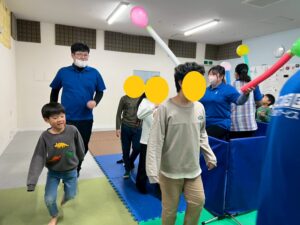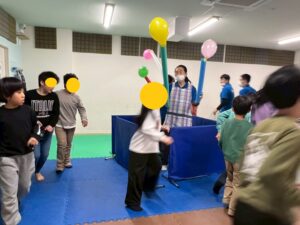 歩いたり走ったり、ジャンプして風船にタッチしたり、しゃがんで歩いたり…
