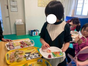 たくさんあるおやつの中から、好きなおやつを選んで