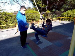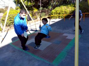 公園に出かけ、鉄棒にぶら下がったりブランコに乗ったりと体幹などの感覚を鍛えました。大好きなお外ということもあり、とても楽しんで過ごすことができていました⭐