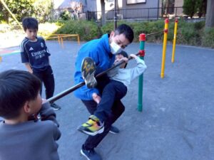 破れないように引っ張りすぎない様に、力加減と相手との距離感を遊びの中で学びました⭐
